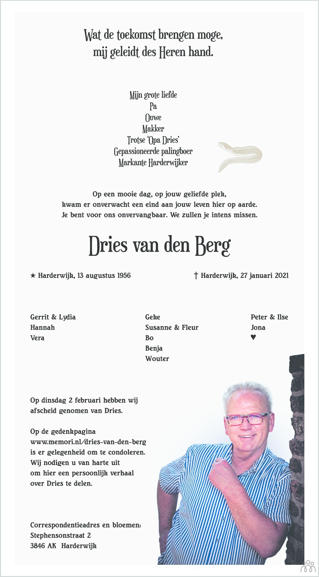 Dries van den Berg 27012021 overlijdensbericht en condoleances Mensenlinq.nl