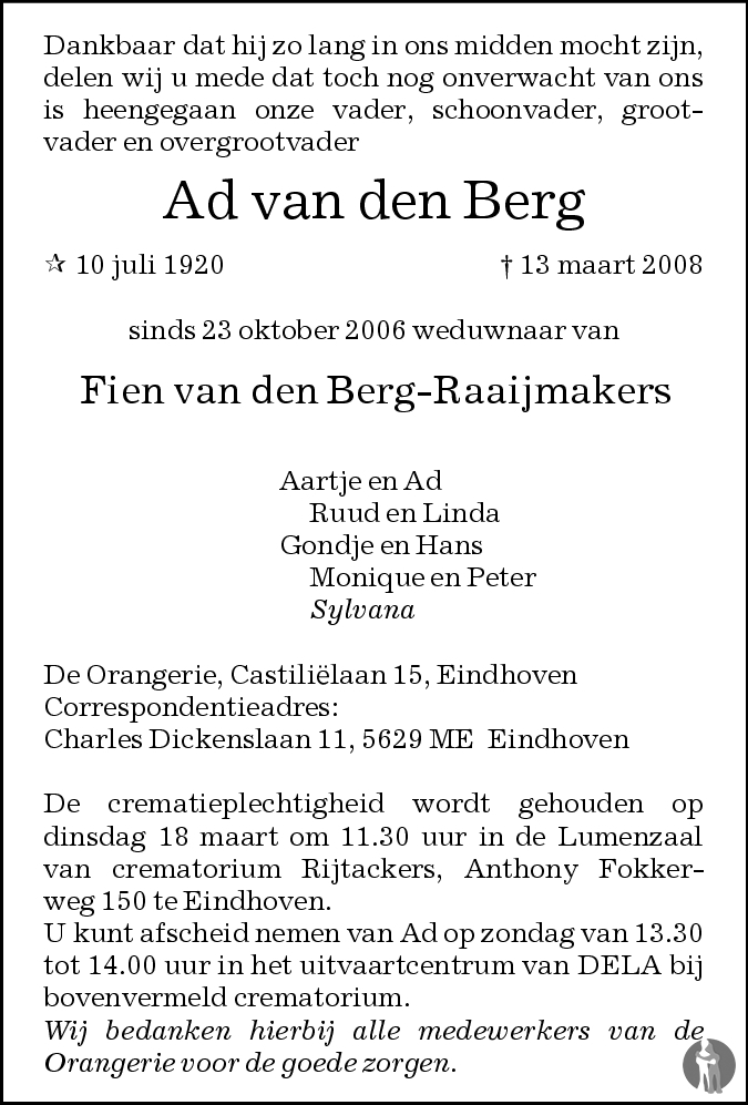 Ad van den Berg 13032008 overlijdensbericht en condoleances Mensenlinq.nl