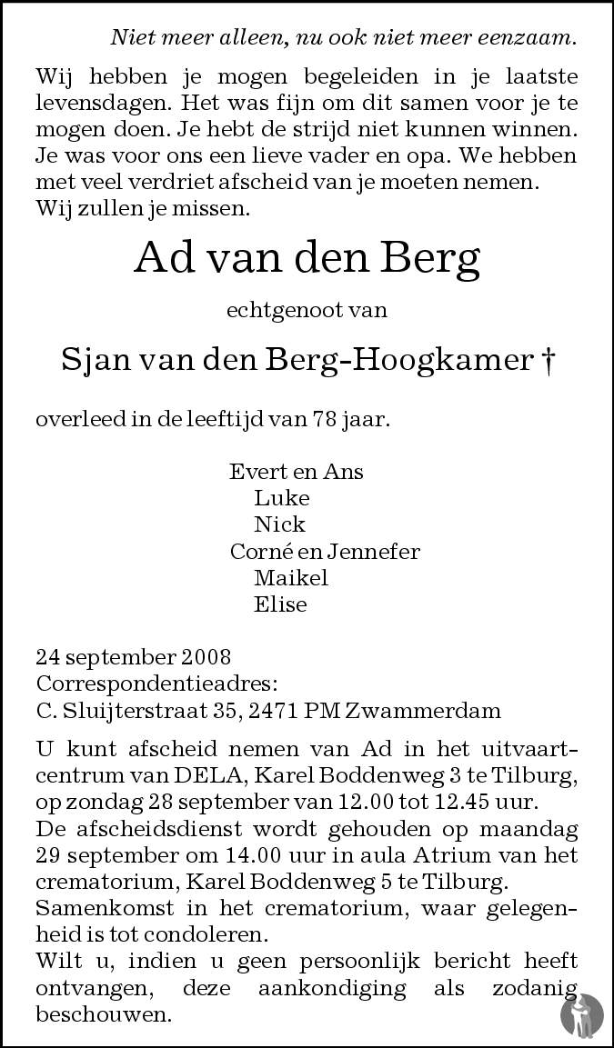 Ad van den Berg 24092008 overlijdensbericht en condoleances Mensenlinq.nl