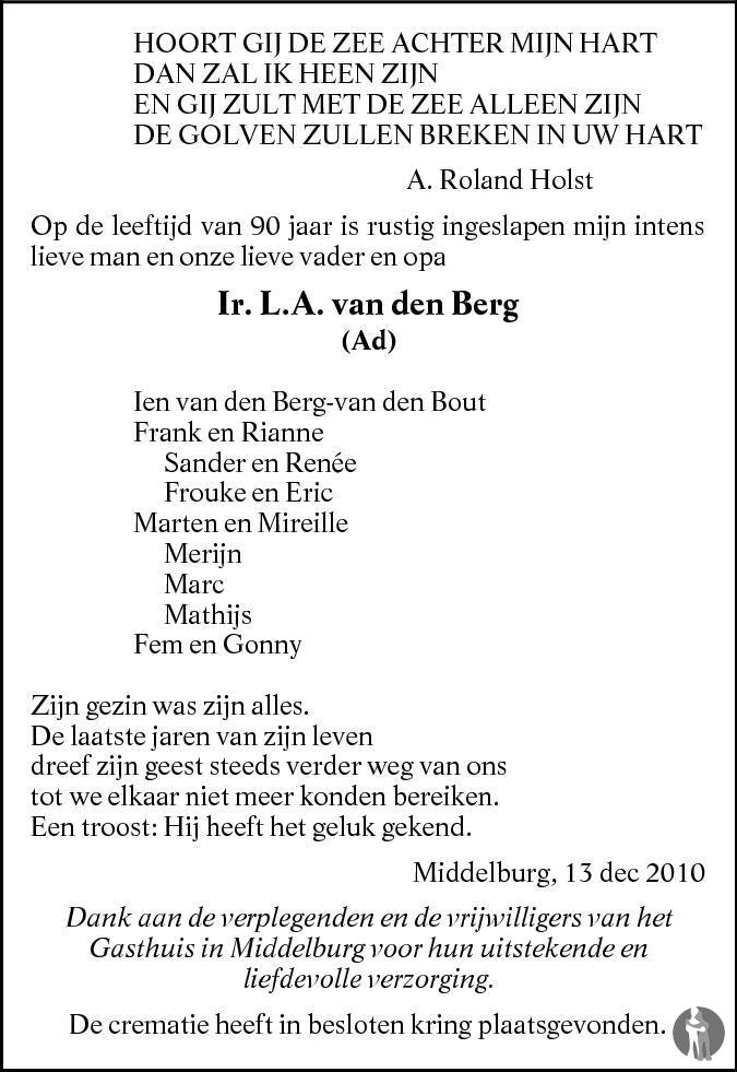 Ir. L.A. (Ad) van den Berg 13122010 overlijdensbericht en condoleances Mensenlinq.nl