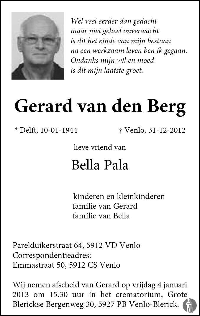 Gerard van den Berg 31122012 overlijdensbericht en condoleances Mensenlinq.nl