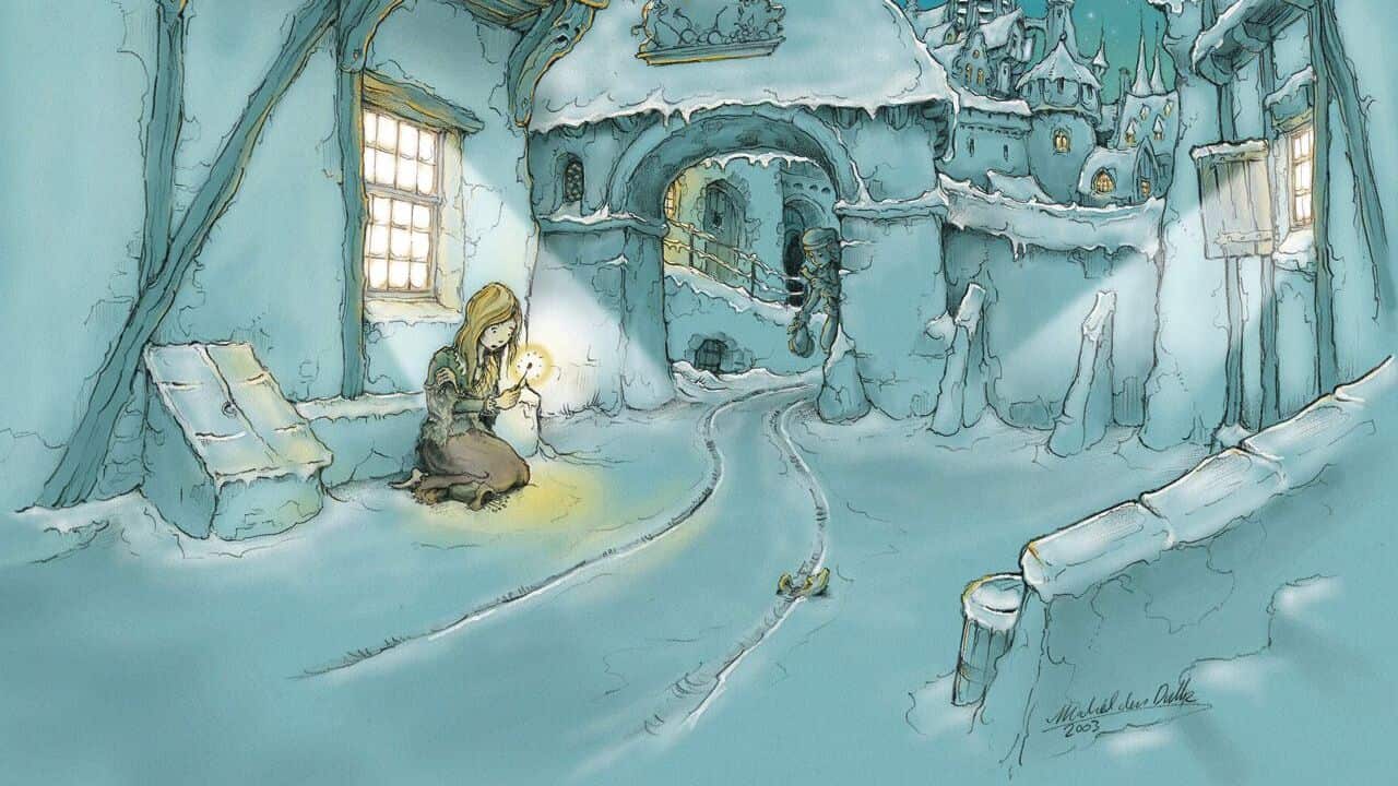 Het meisje met de zwavelstokjes. Een droevig sprookje over een arm eenzaam meisje dat in de koude decemberdagen zwavelstokjes probeert te verkopen. Favoriet. Tekst.