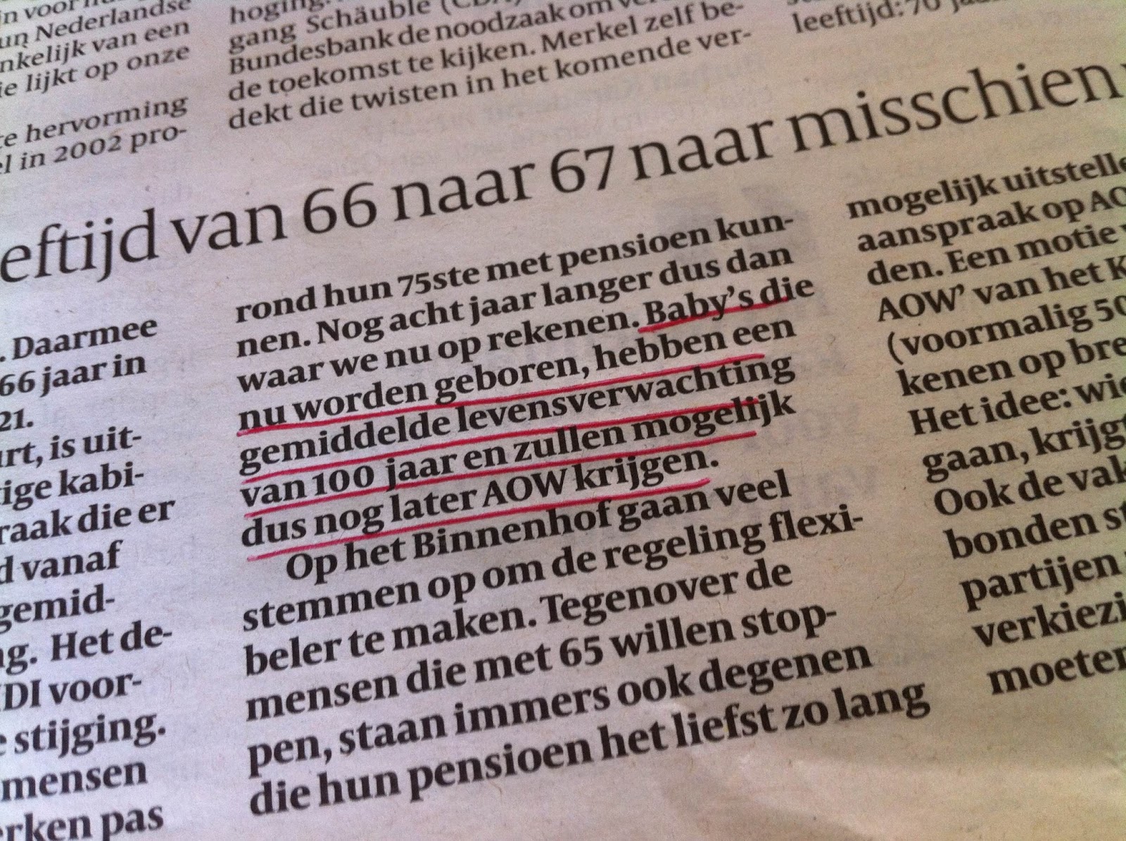 Je zou dus verwachten dat deze omlaag gaat. In 2012 is namelijk afgesproken dat de pensioenleeftijd automatisch omhoog gaat als de levensverwachting stijgt.. Dit komt weer door betere medische.