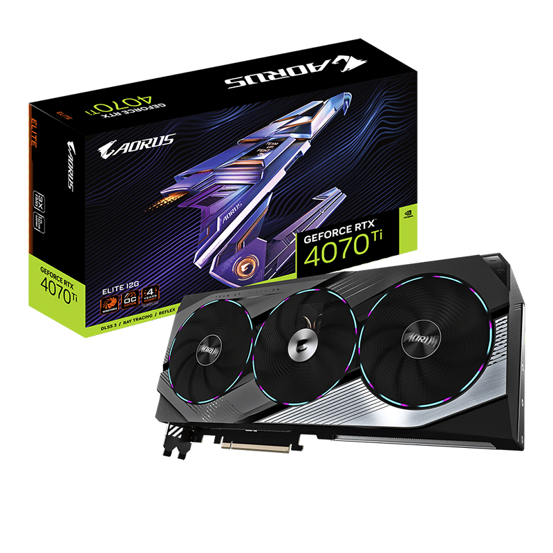 Ahead of its time, ahead of the game is the GIGABYTE AORUS GeForce RTX 4070 Ti ELITE 12G Graphics Cards. Powered by NVIDIA's new RTX architecture, the GIGABYTE AORUS GeForce RTX 4070 Ti ELITE 12G brings stunning visuals, amazingly fast frame rates, and AI acceleration to games and creative applications with its enhanced RT Cores and Tensor Cores, along with a staggering 12 GB of GDDR6X memory.