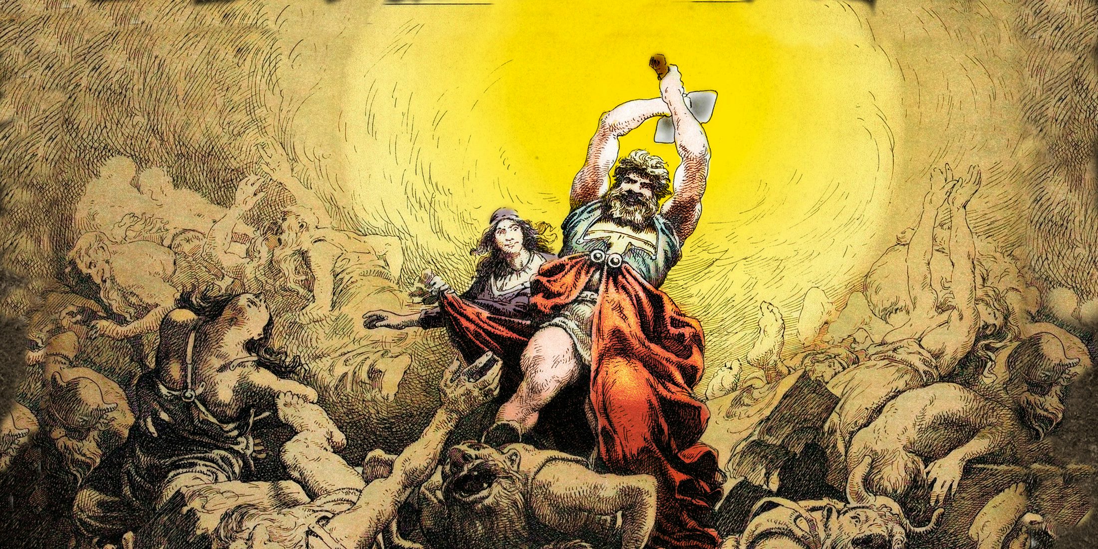 REUZEN: Aartsvijanden van de goden waren niet slecht. In de Noordse mythologie zijn reuzen als Thrym, Surt en Útgarda-Loki de aartsvijanden van de goden. Wij zien de reuzen vaak als slecht, maar de Vikingen keken daar heel anders tegenaan. Onder een gitzwarte hemel verzamelen de reuzen zich op de vlakte Vigrid.
