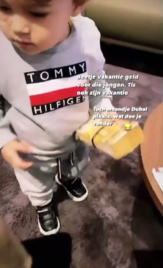 Amper één jaar oud, maar zoontje van Lil' Kleine krijgt stapel bankbiljetten cadeau “Zakgeld