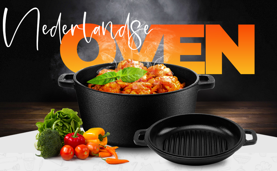 Kichly 2 In 1 Gietijzeren Nederlandse Oven met DualPurpose Grill Pan Deksel