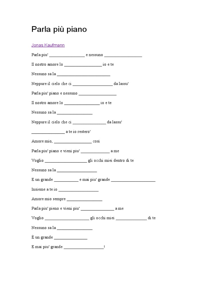 Listen to Parla più piano by Jonas Kaufmann, Orchestra del Teatro Massimo di Palermo & Asher Fisch. See lyrics and music videos, find Jonas Kaufmann, Orchestra del Teatro Massimo di Palermo & Asher Fisch tour dates, buy concert tickets, and more!