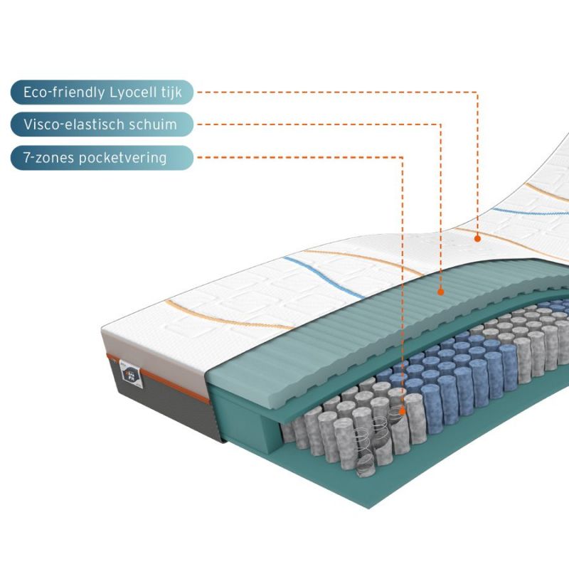 M Line Slowmotion 8 Materiaal matraskern: pocketveren, schuim en ballen van schuim Tijk mag in de wasmachine: Ja Maximale wastemperatuur matrastijk: 60 °C