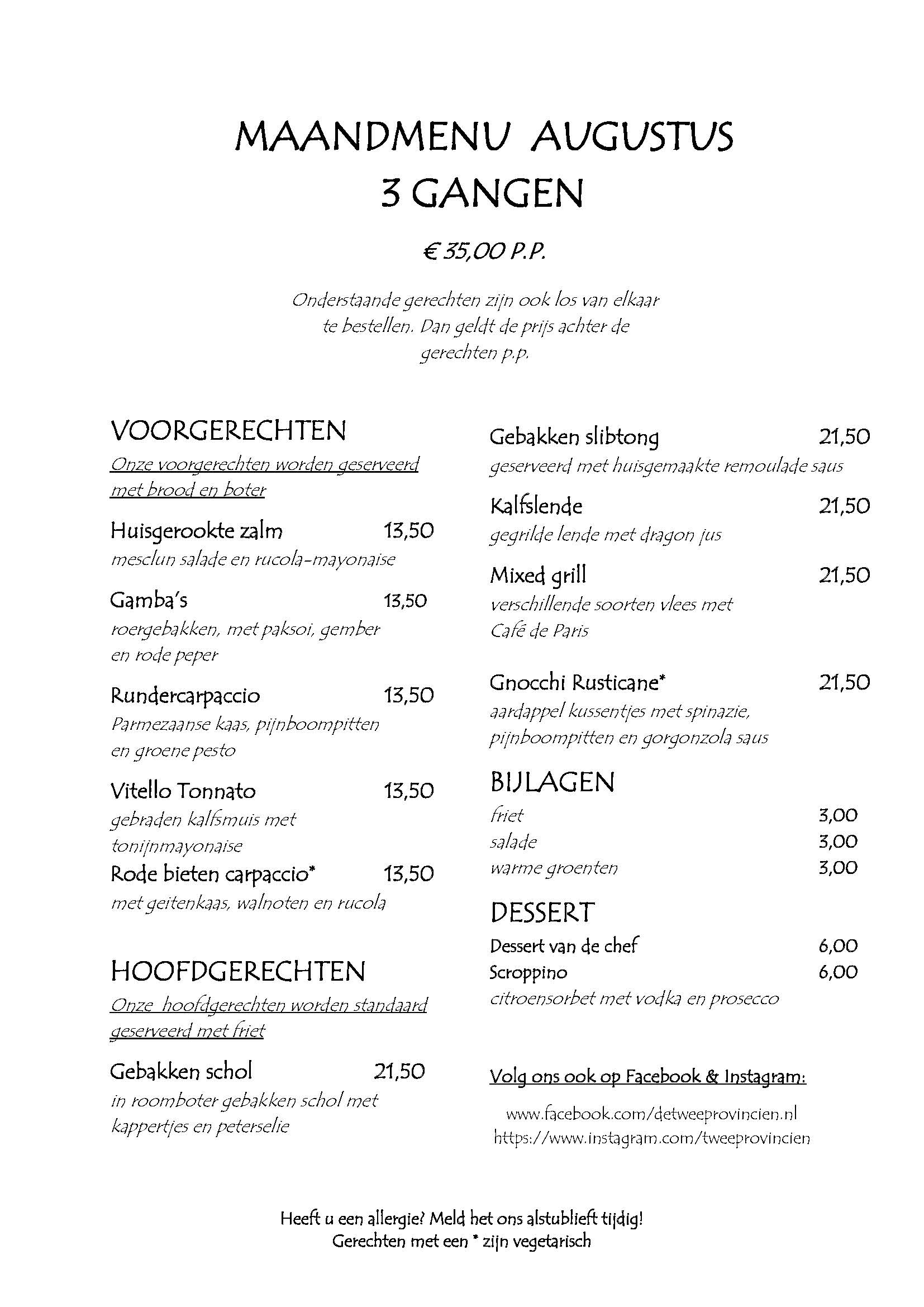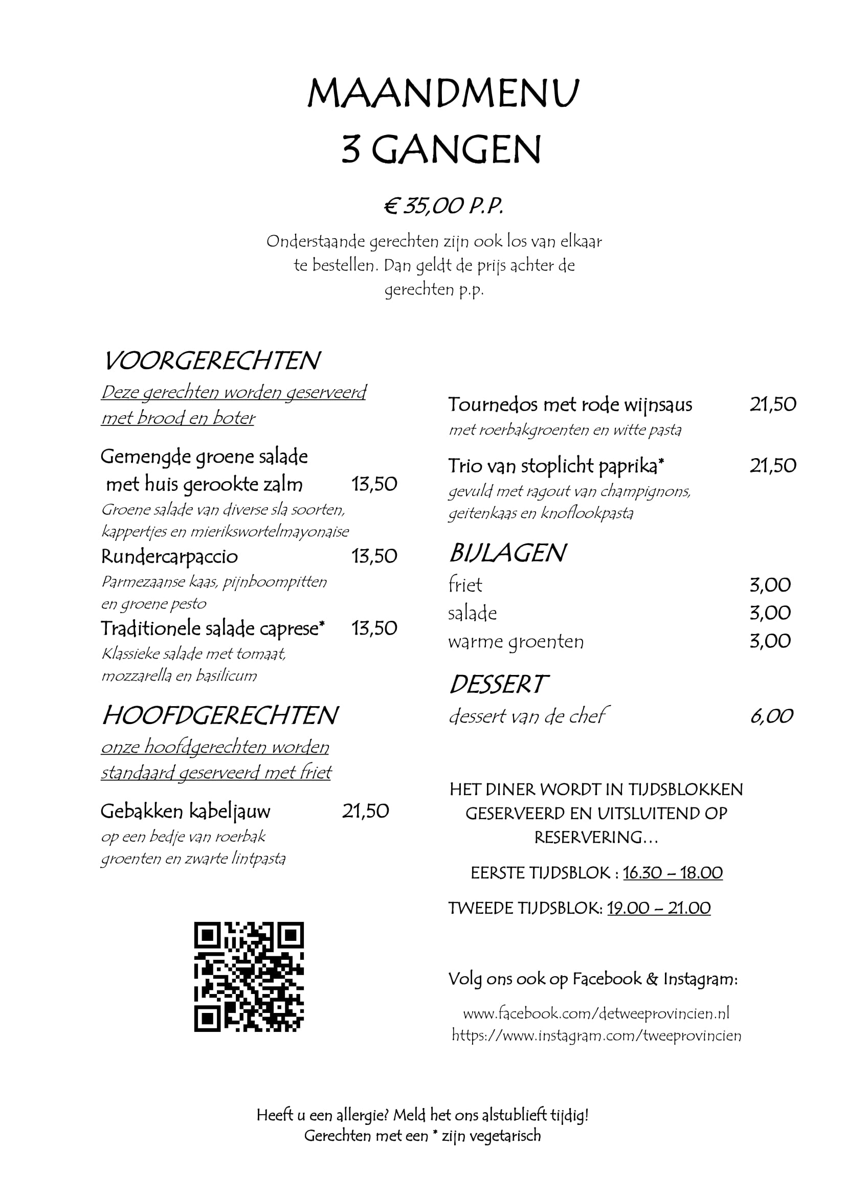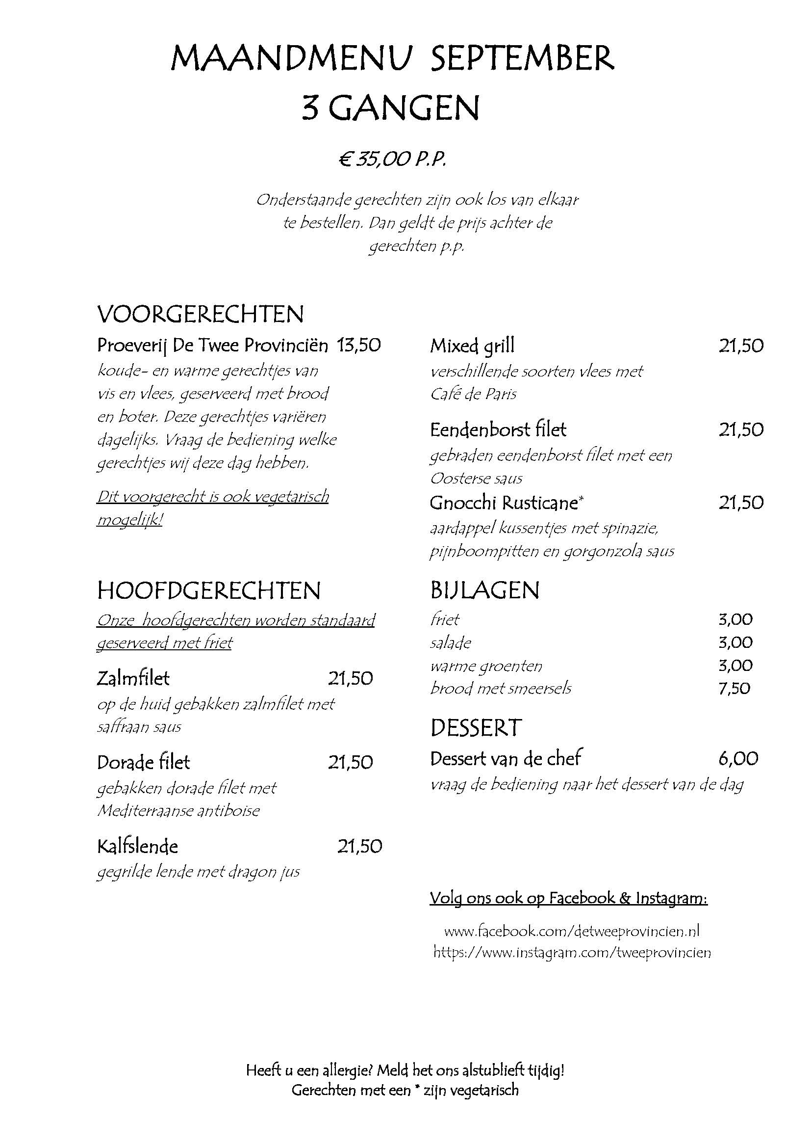 Bekijk de menukaart van Restaurant De Twee Provinciën