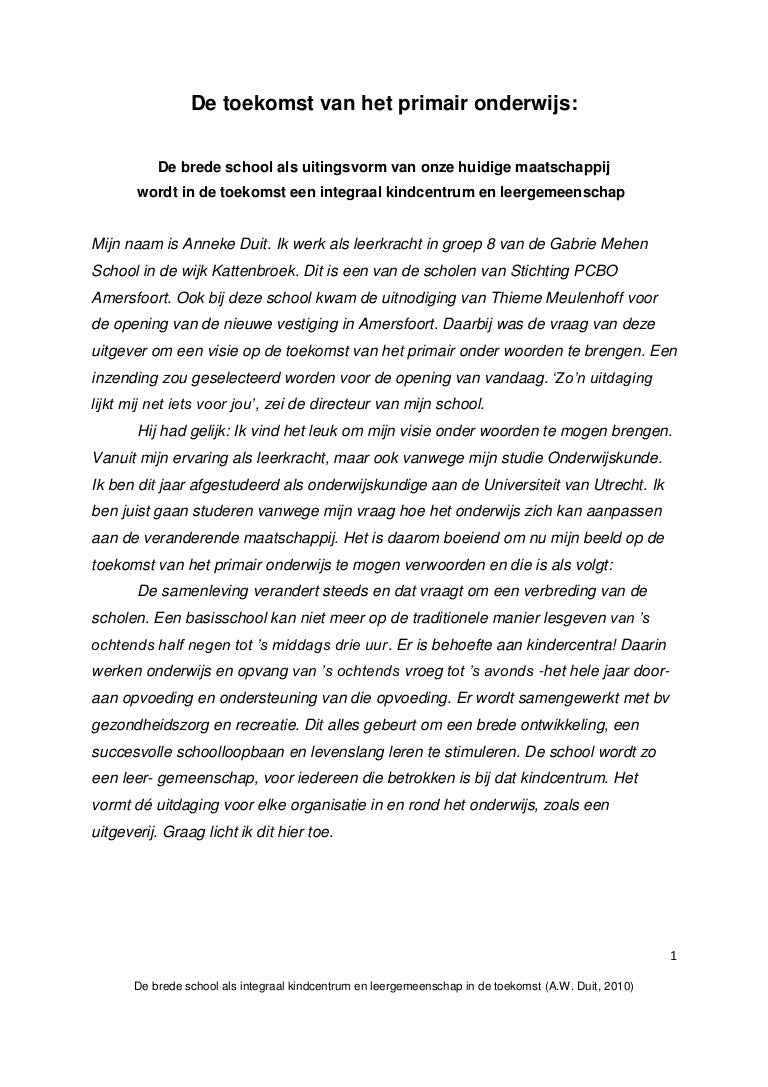 Speech de toekomst van het primair onderwijs, a.w.duit oktober 2010