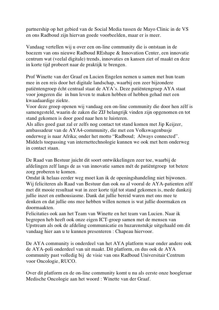 Speech Prof. Dr. F. Corstens ViceVoorzitter RvB UMC St Radboud