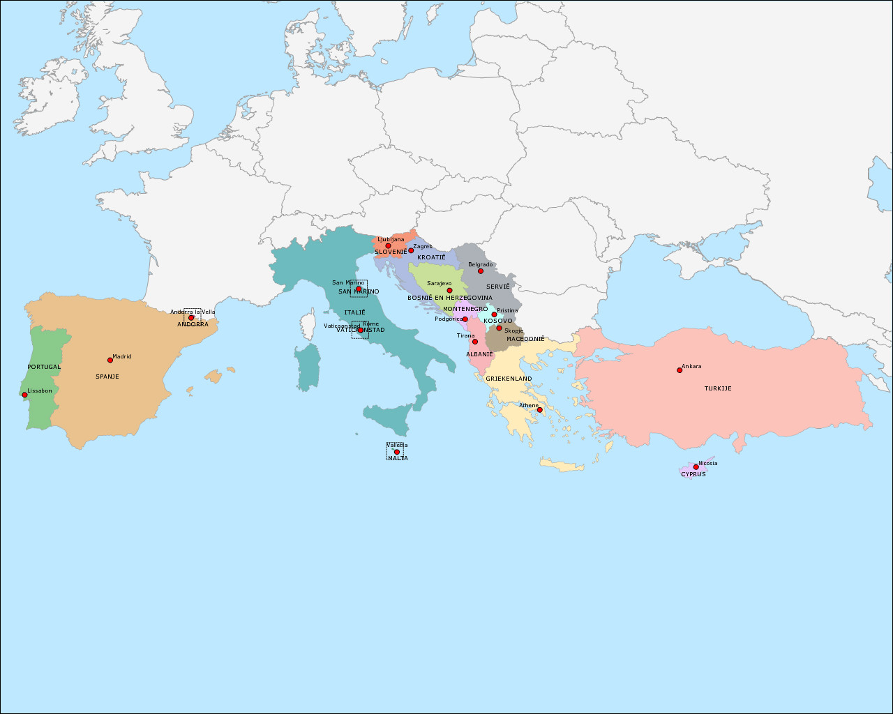 Topografie Landen en hoofdsteden van ZuidEuropa