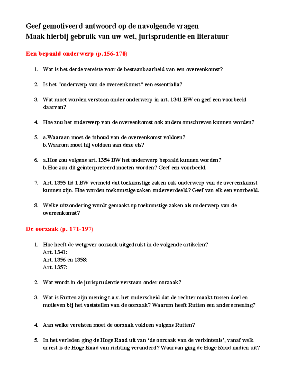 Vragen bij onderwerp en oorzaak Geef gemotiveerd antwoord op de navolgende vragen Maak hierbij