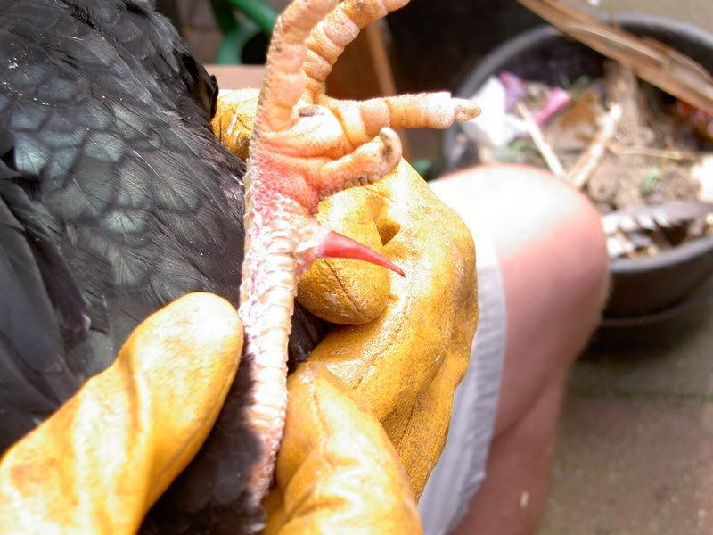 Maak de haan immobiel zoals hierboven beschreven. Houd met één hand de schacht stevig vast en knip de bovenkant van de sporen weg. Zorg ervoor dat je niet helemaal naar beneden knipt, omdat je dan in het bot snijdt. Een metalen vijl kan dan worden gebruikt om rond en glad naar beneden de geschoren randen van de sporen.