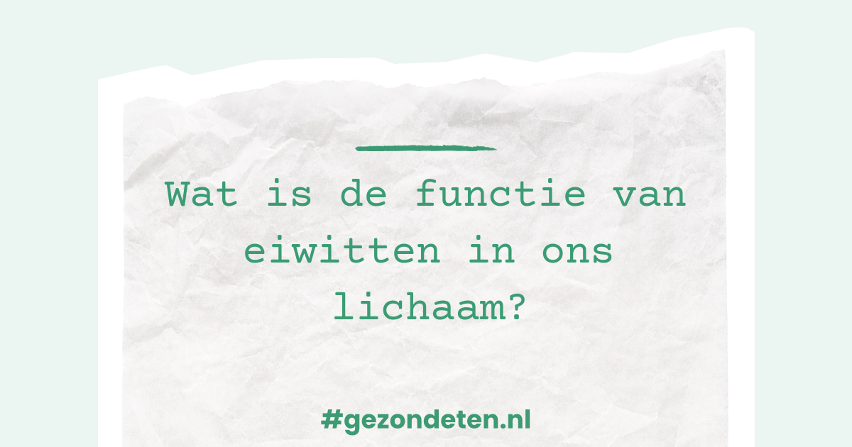 Wat zijn eiwitten? Waar zijn eiwitten goed voor? Hoe maakt je lichaam eiwitten aan? In welke voeding zitten veel eiwitten? Hoeveel eiwitten heb je per dag nodig? Wie hebben behoefte aan extra eiwitten? Kan je ook te veel eiwit binnenkrijgen? Wat gebeurt er bij een tekort aan eiwitten? Helpt eiwitten eten bij het afvallen?