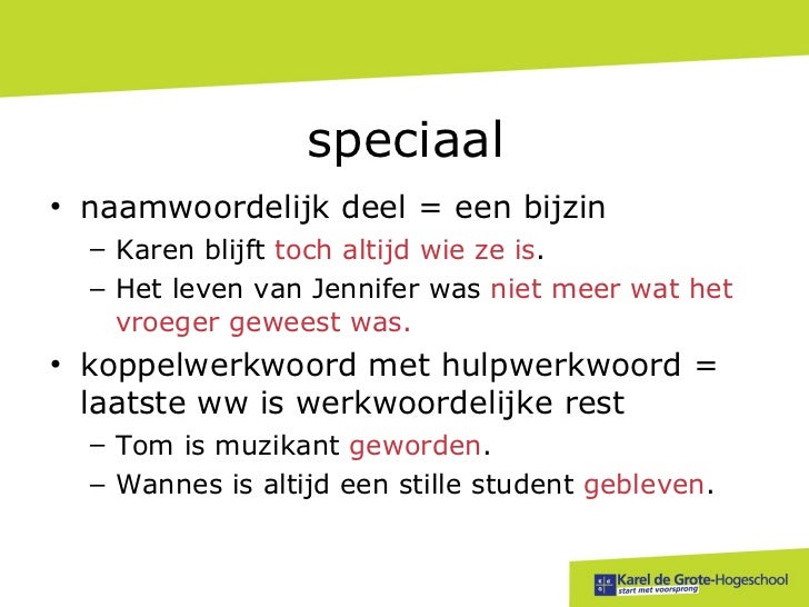 Beknopte bijzin Omschrijving Een beknopte bijzin is een bijzin waarin het onderwerp ontbreekt en de plaats van de persoonsvorm door een deelwoord of infinitief wordt ingenomen. Voorbeelden: (1) Breed grijnzend vertelde hij over zijn overwinning. (2) We hebben geleerd netjes. Beknopte bijzin Meer lezen »