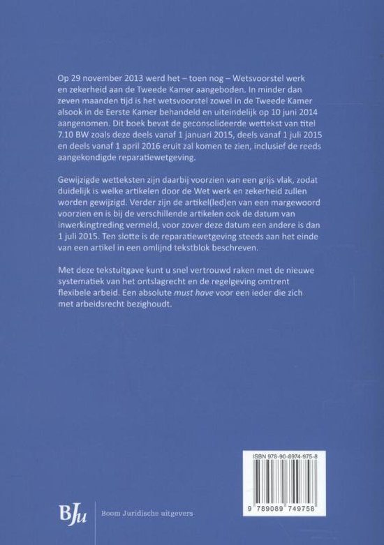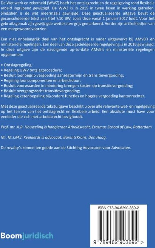 Boom Juridische wettenbundels Wet werk en zekerheid 2017 9789462903692 Boeken